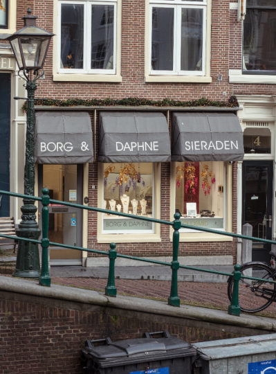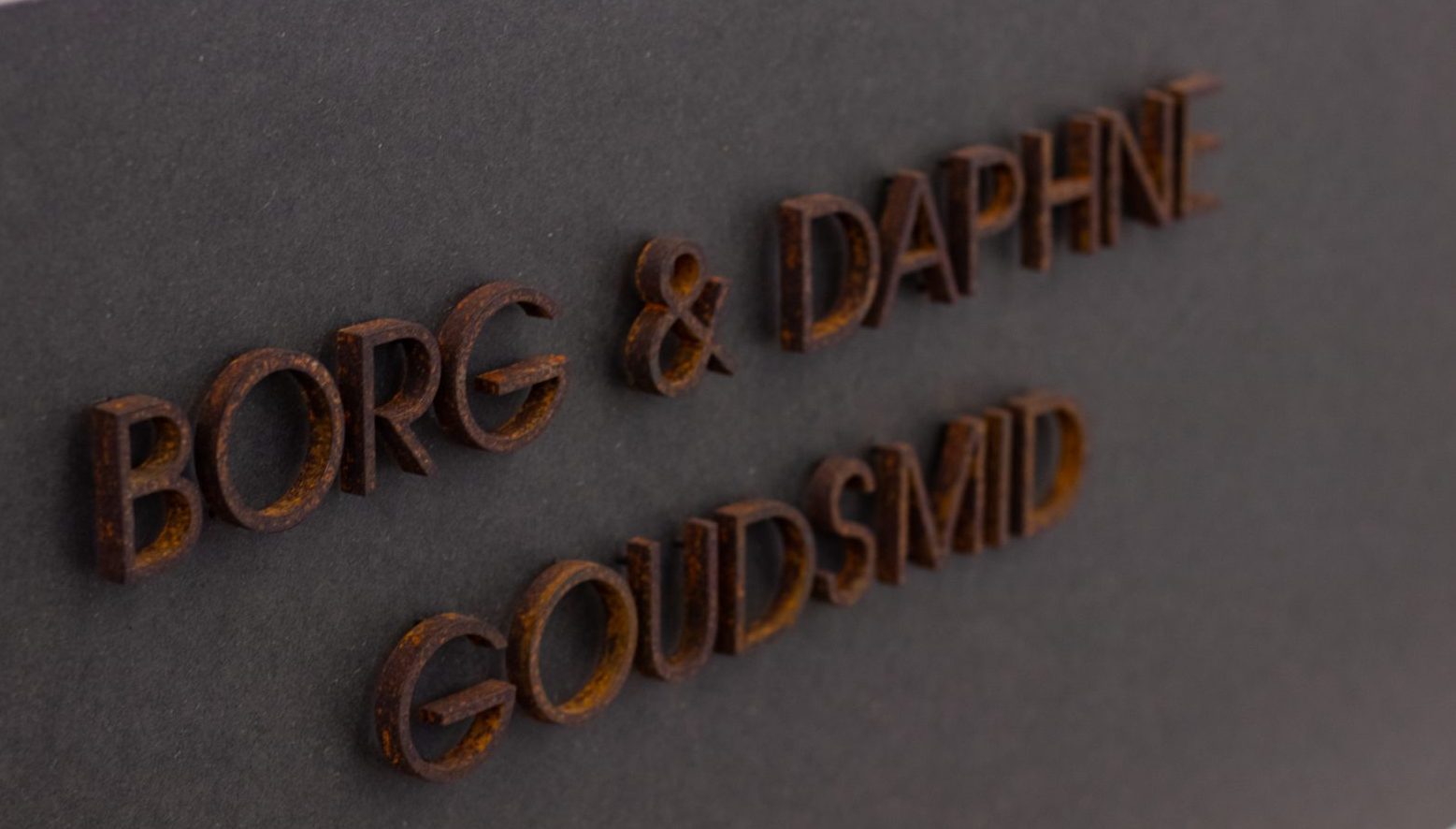 De sieraden en trouwringen van Borg en Daphne worden vervaardigd in het atelier welke is gevestigd aan de achterzijde van het monumentale pand aan de Nieuwe Rijn in hartje Leiden. De handgemaakte sieraden zijn uniek, opvallend en op een ambachtelijke manier gemaakt waarbij gebruik is gemaakt van natuurlijke materialen.